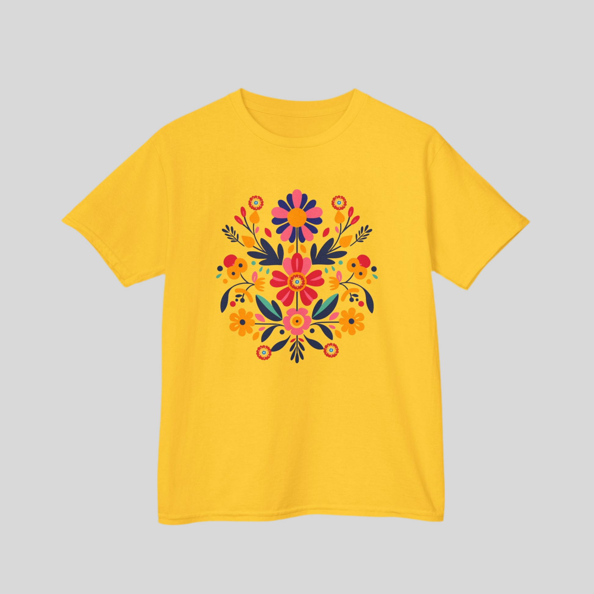 Celebrate color and culture with this vibrant Otomi Folk Art T-Shirt for girls (sizes XS–XL). Inspired by traditional Mexican embroidery, this tee features a bold floral and botanical print in bright, cheerful colors that radiate joy. Made from soft, midweight US cotton, it’s perfect for school days, weekend outings, and festive family events like birthdays, holidays, and reunions.