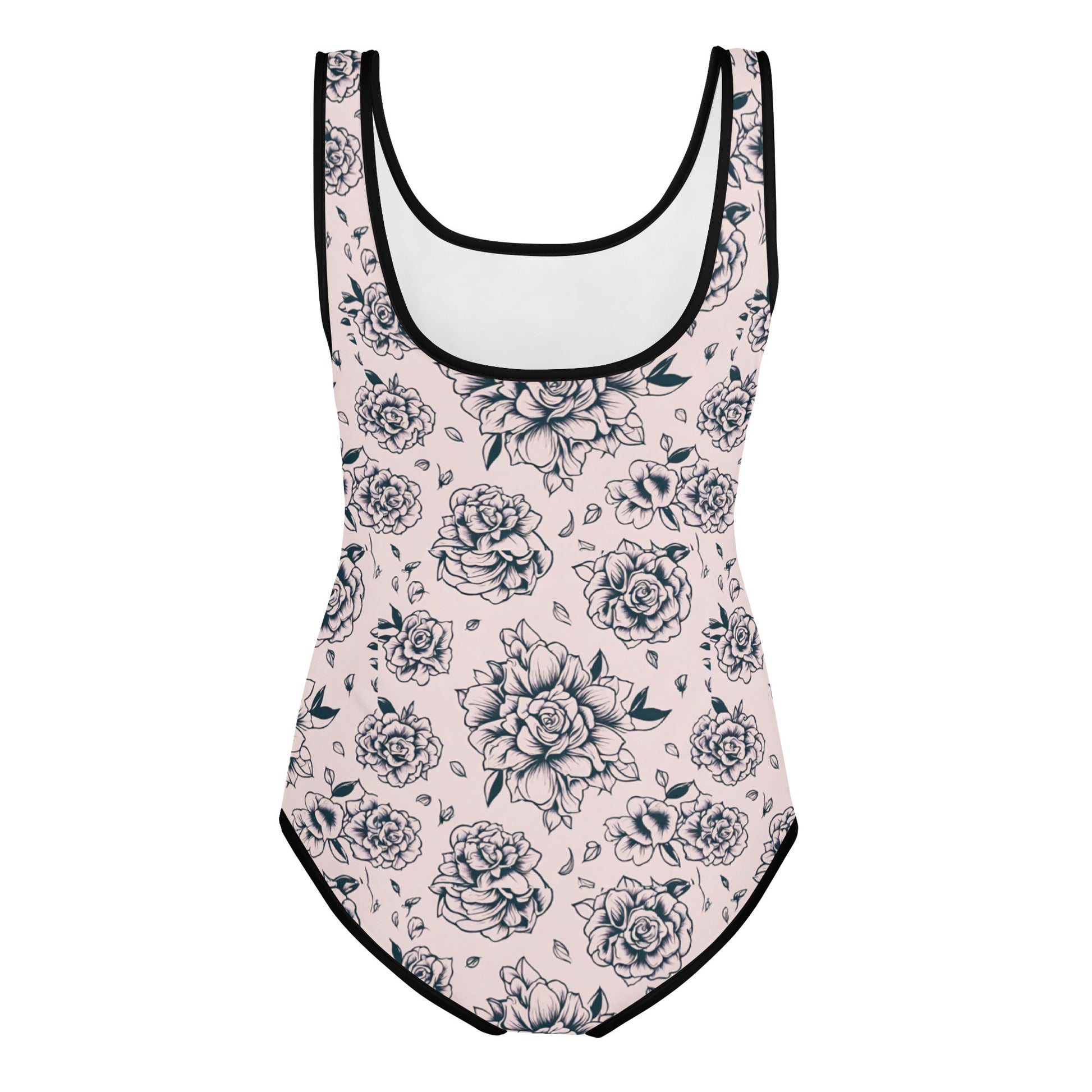 Dress your young trendsetter in vibrant style with our Pink Tattoo Roses Youth Swimsuit (Size 8-20), designed to make a splash at any pool or beach outing. This fun pink bathing suit features a black tattoo roses pattern. Let your tween or teen stand out with confidence this summer in this must-have swimsuit.